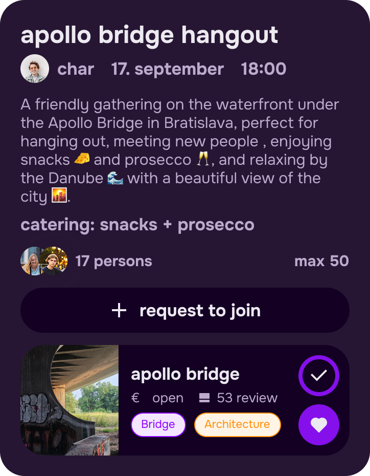 Chceš spoznať nových kamarátov a rozšíriť svoj spoločenský okruh? Vyber si event, ktorý ťa zaujme, a jednoducho sa pridaj!