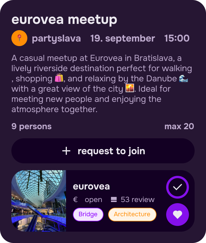 Chceš spoznať nových kamarátov a rozšíriť svoj spoločenský okruh? Vyber si event, ktorý ťa zaujme, a jednoducho sa pridaj!